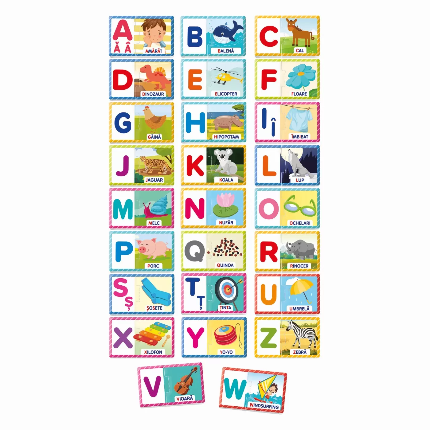 &bdquoAGERINO DE LA A LA Z Un joc educativ format din piese de puzzle cu litere si lucruri care incep cu aceeasi litera, astfel incat copiii sa invete alfabetul si sa faca legatura litera-cuvant.Mai mult, de indata ce copilul este familiarizat cu literele, poate incepe sa citeasca cuvintele litera cu litera, descoperind astfel cuvantul magic al lecturii!.Valori dezvoltate logica, cunostinte despre lume, autonomia, sociabilitatea, memoria, limba straina, aptitudinile motorii. Toate jocurile lui Agerino au fost concepute de specialisti in pedagogie si psihologie si au fost testate in scoli. Varsta recomandata 3+.