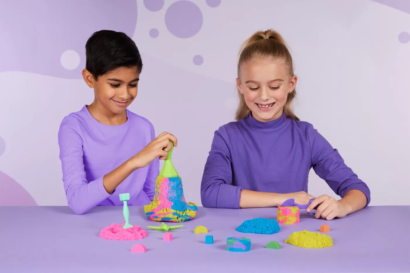 Kinetic Sand Squish N&rsquo Create te va inspira sa creezi. Acest set Kinetic Sand este plin cu tot ce ai nevoie pentru a crea surprize de nisip un total de 382 g de nisip albastru,galben si roz. Lasa-l sa curga printre degetele tale – este atat de satisfacator, incat nu vei putea sa-l lasi jos. Ataseaza manerul la diferite instrumente, precum cele pentrupresare, taiere si modelare. Ai atat de multe moduri de a te juca. Afaneaza nisipul si umple matrita octogonala, apoi foloseste instrumentele de strangere pentru a indepartacentrul. Strange nisipul cu diferite unelte, amesteca diferite tipuri de nisip sau pune nisip Kinetic in interiorul matritei. Te poti juca din nou si din nou. Pentru si mai multemodalitati de a te juca, cauta sacii de nisip colorat de 907 g Kinetic Sand (jucariile sunt vandute separat). Kinetic Sand este nisipul original de joaca magic, modelabil sifascinant. Este mai bun decat argila de modelare pentru arte si mestesuguri si, in plus, acest nisip senzorial nu se usuca niciodata, asa ca te poti juca cu Kinetic Sand timpde intregi, intr-un joc independent, tactil. Kinetic Sand este realizat cu nisip natural si este non-toxic si hipoalergenic. Se lipeste in mod magic si se curata usor. Jucariilepentru copii Kinetic Sand pentru baieti si fete cu varsta de cel putin 3 ani sunt cadoul perfect pentru copii. Personalizeaza-ti propriile efecte surpriza din nisip cu setul KineticSand Squish N&rsquo Create.