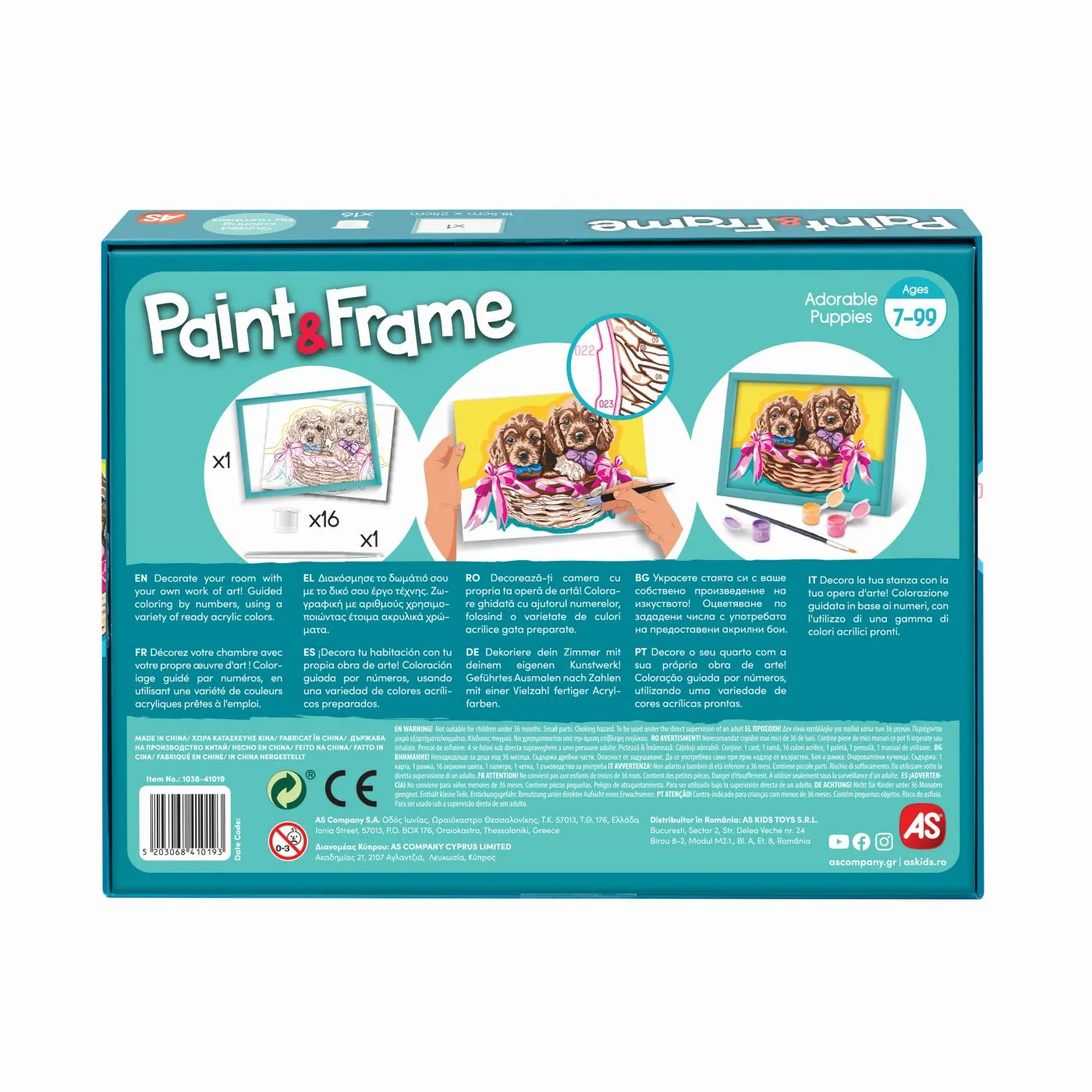 Pictaza si Inrameaza Catelusi Adorabili este setul perfect pentru micii artisti care vor sa isi exprime creativitatea prin culoare si sa creeze o adevarata opera de arta! Bazat pe tehnica de colorare pe numere, acest set ii invata pe copii sa coloreze cu atentie si precizie, imbunatatindu-si astfel talentul artistic, rabdarea si abilitatile motorii fine. La final, fiecare copil se va bucura de o pictura reusita, gata de inramat si expus cu mandrie. Satisfactie si bucurie garantata! Transforma-te in artist si creeaza un tablou plin de culoare, ideal pentru a decora camera copiilor sau pentru a fi oferit cadou. Setul include10 culori acrilice gata preparate, 1 paleta, 1 card preimprimat, 1 pensula, 1 rama, 1 manual de utilizare. Cu Pictaza si Inrameaza, oricine poate deveni artist!