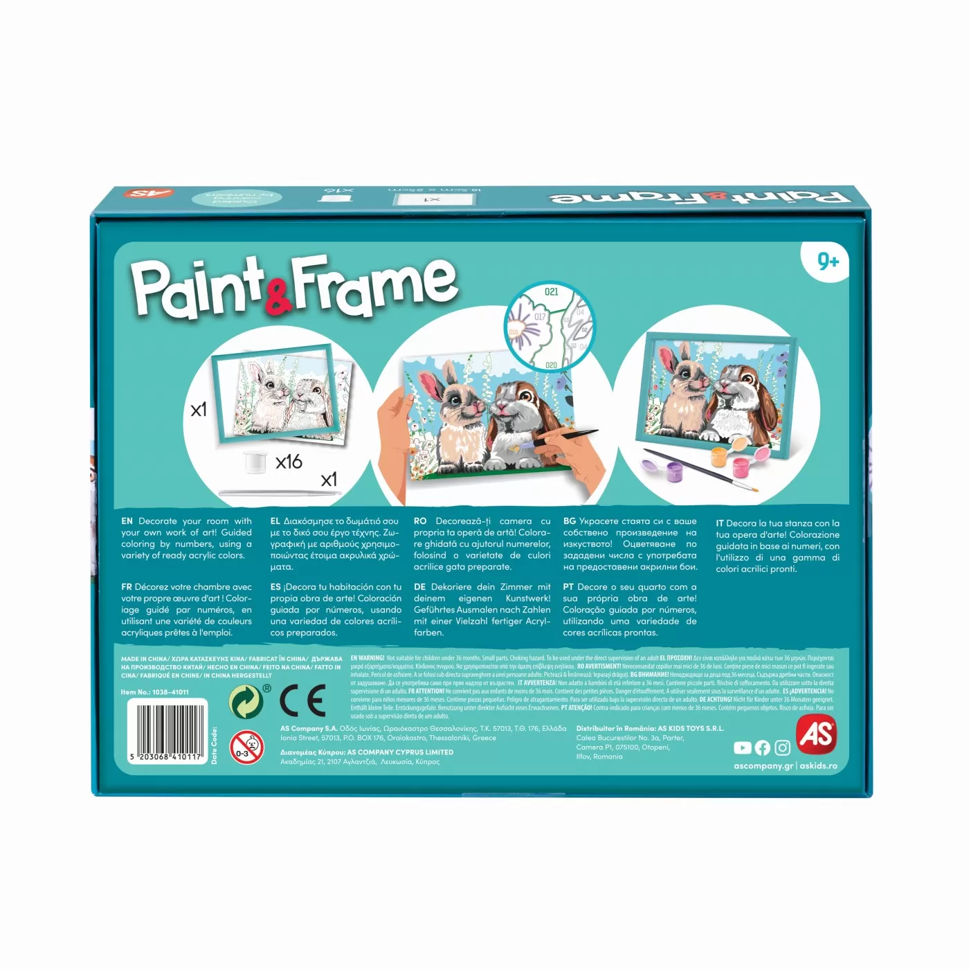 Cu kiturile Paint & Frame, bazate pe tehnica colorarii dupa numere, copiii invata sa coloreze diferitele imagini cu atentie si grija, imbunatatindu-si astfel talentul artistic si dezvoltandu-si abilitatile motorii. La final, ei vor simti un sentiment de bucurie, mandrie si satisfactie care ii va stimula sa doreasca sa continue sa picteze. Satisfactie si bucurie! Transformati-va in artisti si fiti mandri de capodopera voastra. Paint & Frame ii transforma pe toti in adevarati artisti! Tablourile colorate cu rame incluse sunt perfecte pentru camerele copiilor.