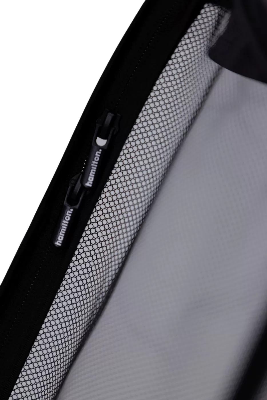 Plasa de insecte ofera o protectie eficienta impotriva tantarilor si a altor insecte nedorite. Datorita materialului elastic, se adapteaza perfect pe caruciorul Hamilton, asigurand o acoperire completa si fara goluri. Pentru mentinerea igienei, este lavabila la 30 de grade Celsius.