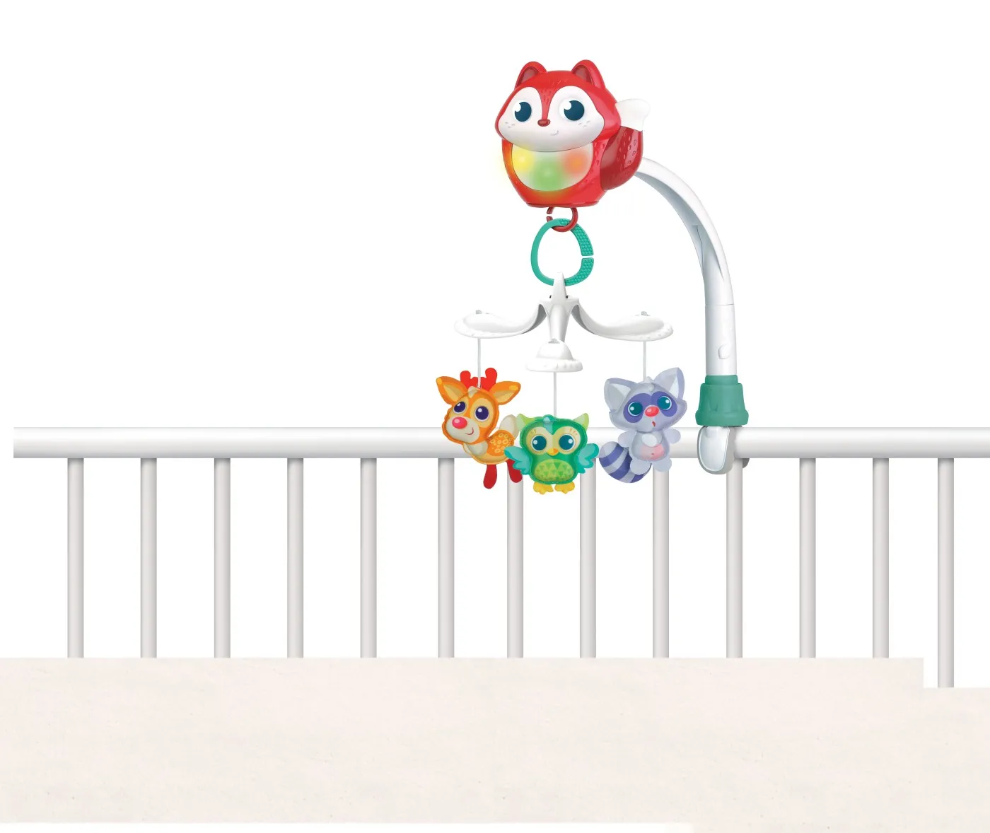 Proiectorul Vulpita este un companion perfect pentru a aduce liniste si distractie in viata micutilor tai, oferindu-le o experienta reconfortanta atat acasa, cat si in miscare. Acesta include trei moduri distincte, fiecare contribuind la crearea unei atmosfere placute si relaxante pentru somn sau joaca. Primul mod este caruselul muzical pentru patut, echipat cu o actiune motorizata care creeaza miscare blanda si melodii linistitoare timp de pana la 20 de minute. Melodiile sunt insotite de sunete din natura, lumini de culori schimbatoare si prieteni simpatici din padure care se rotesc usor deasupra patutului. Al doilea mod permite atasarea usoara a proiectorului la carucior, transformandu-l intr-o sursa de distractie amuzanta in timpul plimbarilor. Al treilea mod transforma proiectorul intr-un companion muzical portabil. Vulpita prietenoasa poate fi luata oriunde mergi, oferindu-le micutilor un spectacol plin de lumini si melodii. Poate fi plasata pe o masa sau pe o suprafata plana, unde vulpea se va roti si misca ca intr-un dans de balet. Recomandat pentru copiii incepand de la 0 luni in sus, proiectorul Vulpita este conceput pentru a sprijini calmarea si relaxarea micutilor, contribuind la o rutina de somn linistita si odihnitoare. Cu sunetele linistitoare, lumina blanda si miscarea jucausa, acesta nu doar ca stimuleaza simturile copiilor, dar ii ajuta si sa se simta protejati si iubiti.